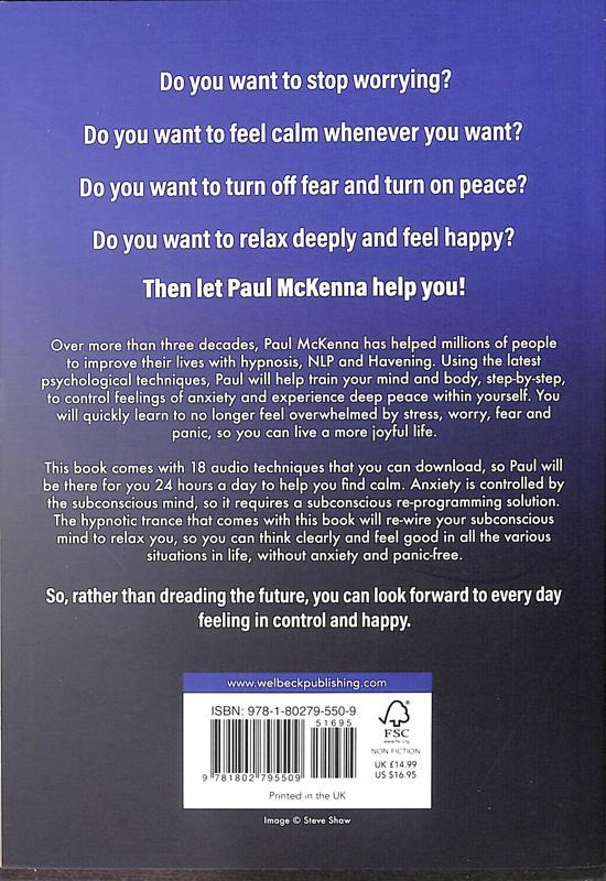 Over more than three decades, Paul McKenna has helped millions of people to improve their lives with hypnosis, NLP and Havening. Using the latest psychological techniques, Paul will help train your mind and body, step-by-step, to control feelings of anxiety and experience deep peace within yourself. You will quickly learn to no longer feel overwhelmed by stress, worry, fear and panic, so you can live a more joyful life.