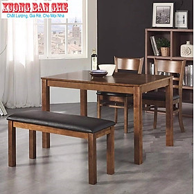 Mô tả sản phẩm - Kích thước bàn 1,2m*75cm, cao 75cm - Kích thước ghế 40*43*80cm- Băng ghế dài 1m1x36x43 - Chất liệu gỗ cao su tự nhiên, chất liệu nệm: simili - Mặt bàn