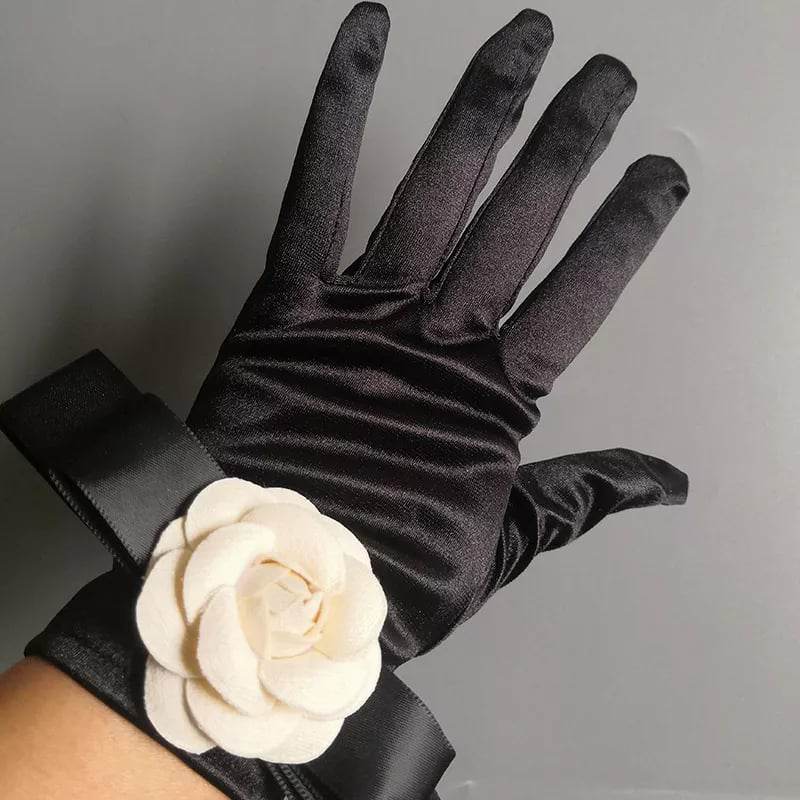 Mua tại TiktokGăng tay Cô dâu và Dạ hội, đi tiệc, sự kiện. MS: 45151. Chất liệu: satin lụa, co giãn nhẹ. Kiểu dáng: bao kín ngón, ôm tay, đính hoa trà.