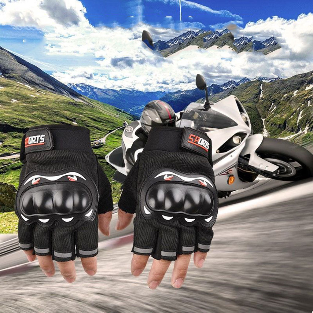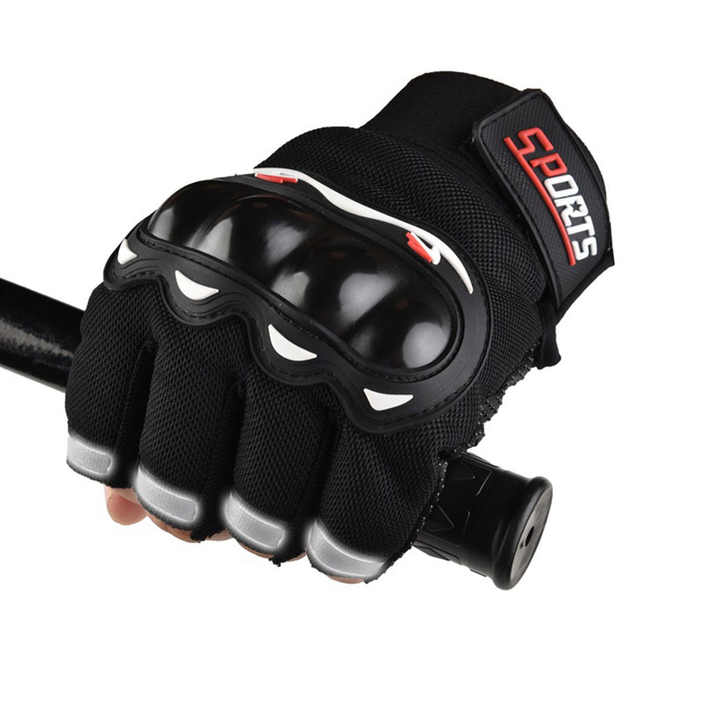 Găng tay hở ngón dành cho người đi moto - xe máy Chất liệu: Vải Airmesh, gù nhựa cứng, da lộn, lòng bàn tay có hạt cao su tăng độ bám Loại găng hở ngón