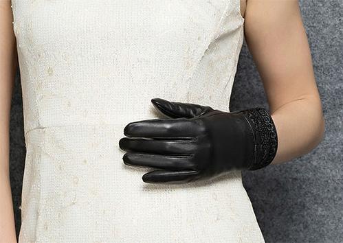 ✨Găng tay nữ da cừu phối ren nữ tính - BHY8700 Bao tay da mùa đông, lót lông mềm, tích hợp cảm ứng.