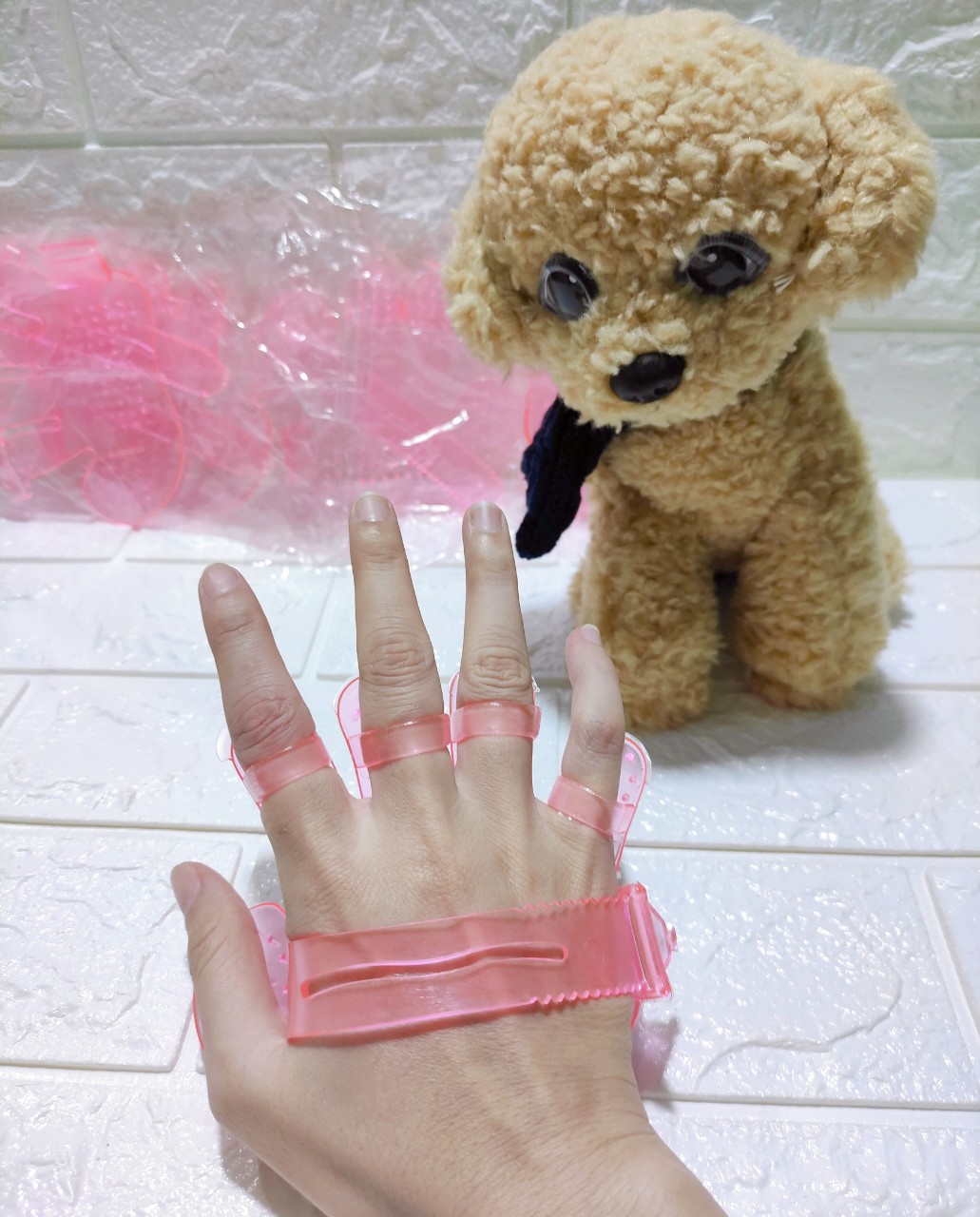 MÔ TẢ SẢN PHẨM - Găng tay tắm cho chó mèo là sản phẩm nhựa dẻo trong suốt có hình bàn tay, được thiết kế với các đầu nhựa mềm, dẻo không làm đau thú