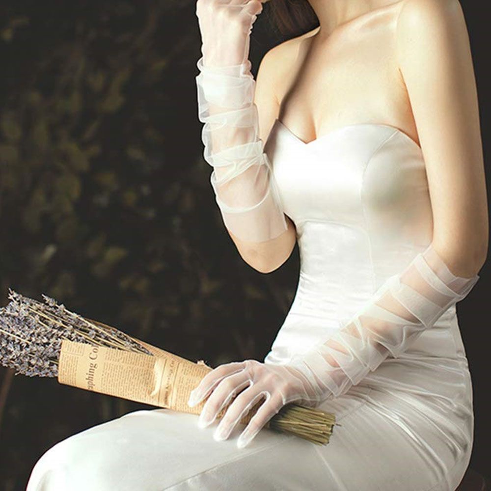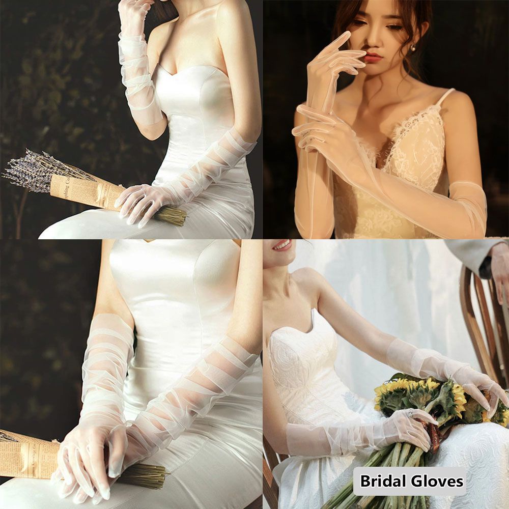 ✨Găng tay vải tuyn trong suốt thời trang màu trắng cho Cô dâu và Dạ hội, đi tiệc, sự kiện, lễ hội, chụp ảnh MS: 40825