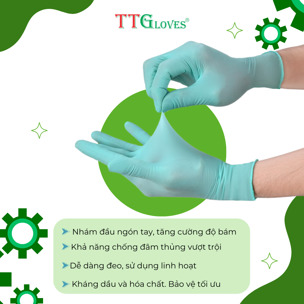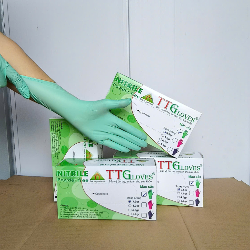 Găng Tay Nitrile Không Bột TTGloves Màu Xanh Lá Chuẩn Nhà Máy!