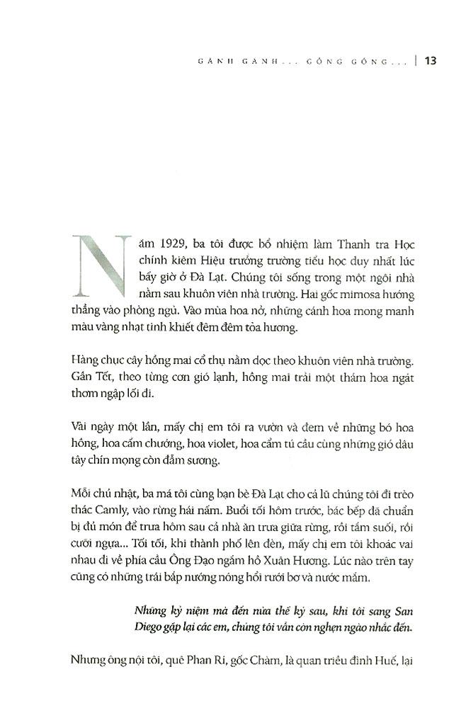 Cuốn hồi ký gồm những câu chuyện về những thăng trầm cuộc đời của bà Nguyễn Thị Xuân Phượng từ năm 1945. Vào những năm 1967, khi đang là bác sĩ công tác tại Ủy ban Liên lạc văn hóa với người nước ngoài, do giỏi tiếng Pháp, bà Nguyễn Thị Xuân Phượng được Chủ tịch Hồ Chí Minh giao trọng trách chăm sóc sức khỏe cho vợ chồng đạo diễn người Hà Lan Joris Ivens và Marceline Loridan khi họ làm phim tại Vĩnh Linh. Cơ duyên này đã tạo nên bước ngoặt, khiến bà quyết định trở thành nữ đạo diễn phim tài liệu. Năm 1968, bà trở thành nữ đạo diễn, phóng viên chiến trường duy nhất ở Việt Nam làm việc tại Phòng Truyền hình, tiền thân của Đài truyền hình Việt Nam bây giờ. Bà đã thực hiện hàng loạt phim tài liệu mang tính thời sự, phản ánh những sự kiện chiến sự tại chiến trường Campuchia, biên giới phía bắc, và là một trong những phóng viên đầu tiên vào Dinh Độc lập theo trung đoàn xe tăng vào ngày 30.4.1975…