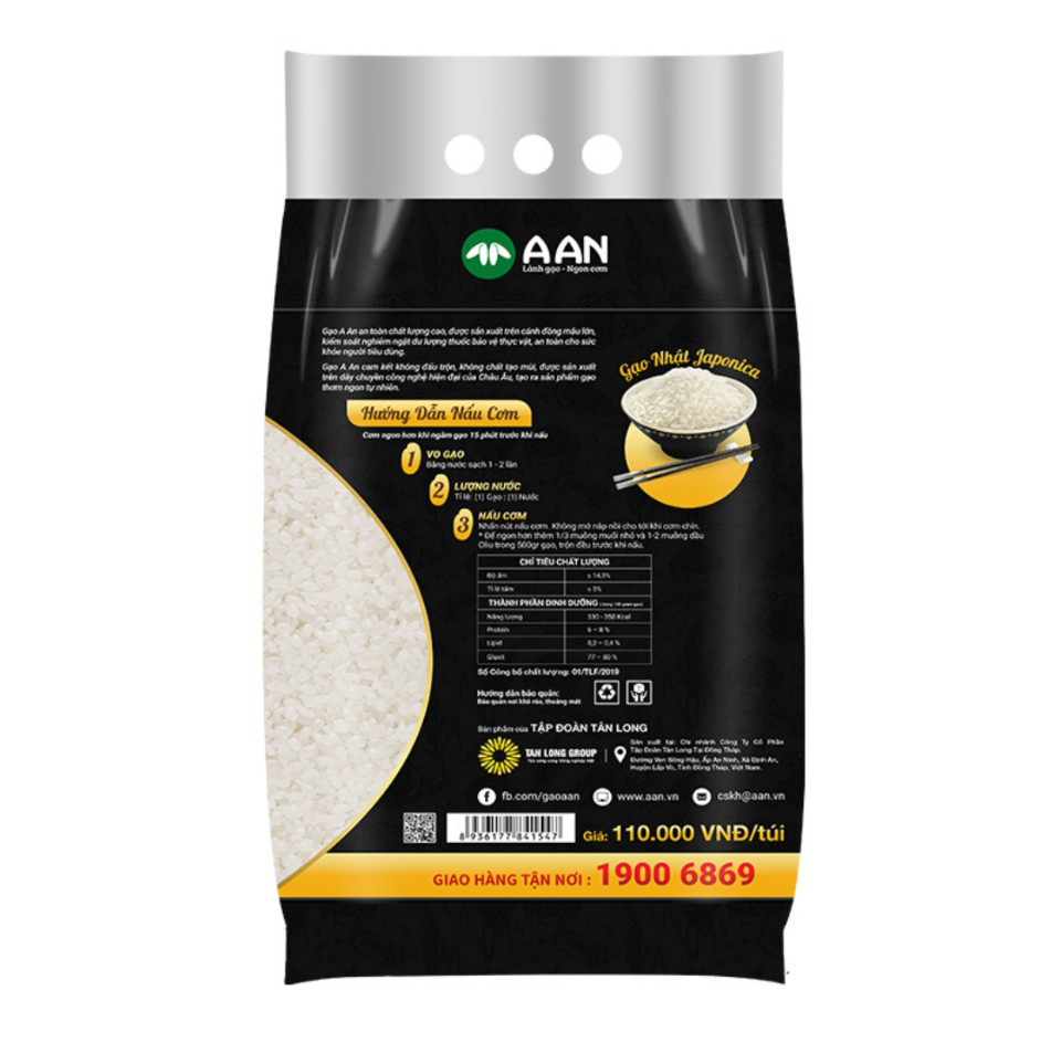 ✨Gạo Nhật Japonica Túi 5Kg ( A An) - Hạt tròn, cơm ngọt, rất dẻo, hạt cơm kết dính