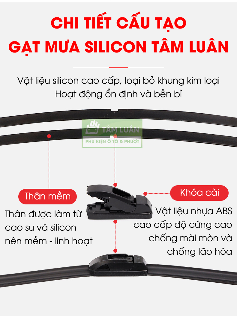 ✨Gạt mưa ô tô silicon Tâm Luân, KHÔNG XƯƠNG - Thân mềm, gạt sạch - không tiếng ồn - độ bền cao - không bị oxi hoá, độ bền lên đến 10 năm