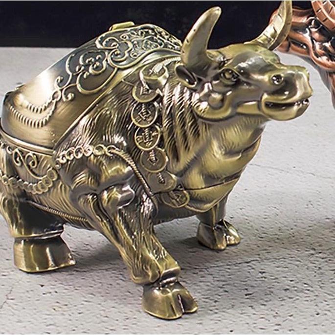Gạt tàn thuốc linh vật Trâu phong thủy có nắp kéo đậy kín độc đáo GTT89 | Quang Duy Plasma