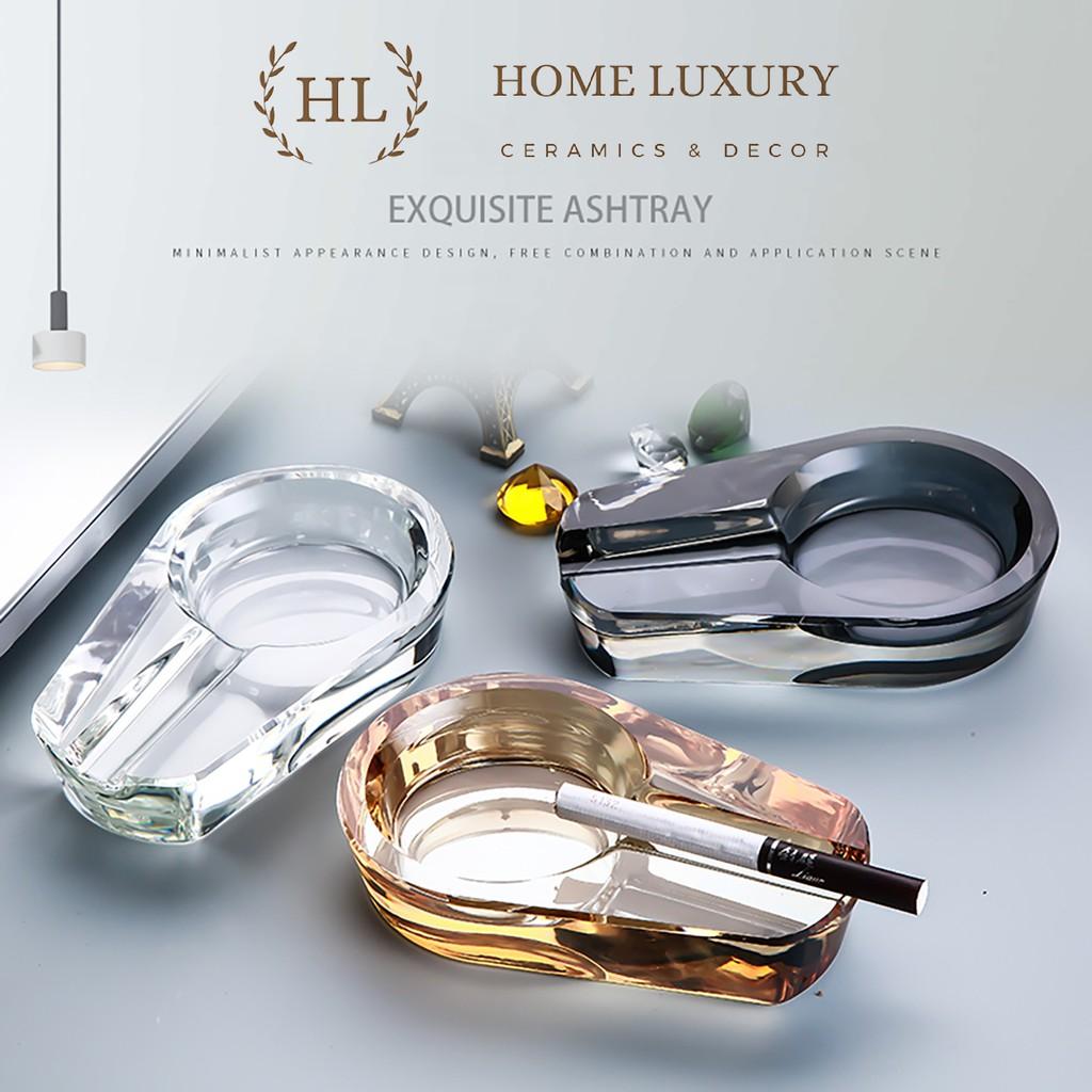 Nếu như gạt tàn sứ tráng men nhìn sang trọng và quyến rũ trong trang trí nội thất giả cổ kiểu hoàng gia hay quý tộc thì gạt tàn thủy tinh trong suốt lại phù