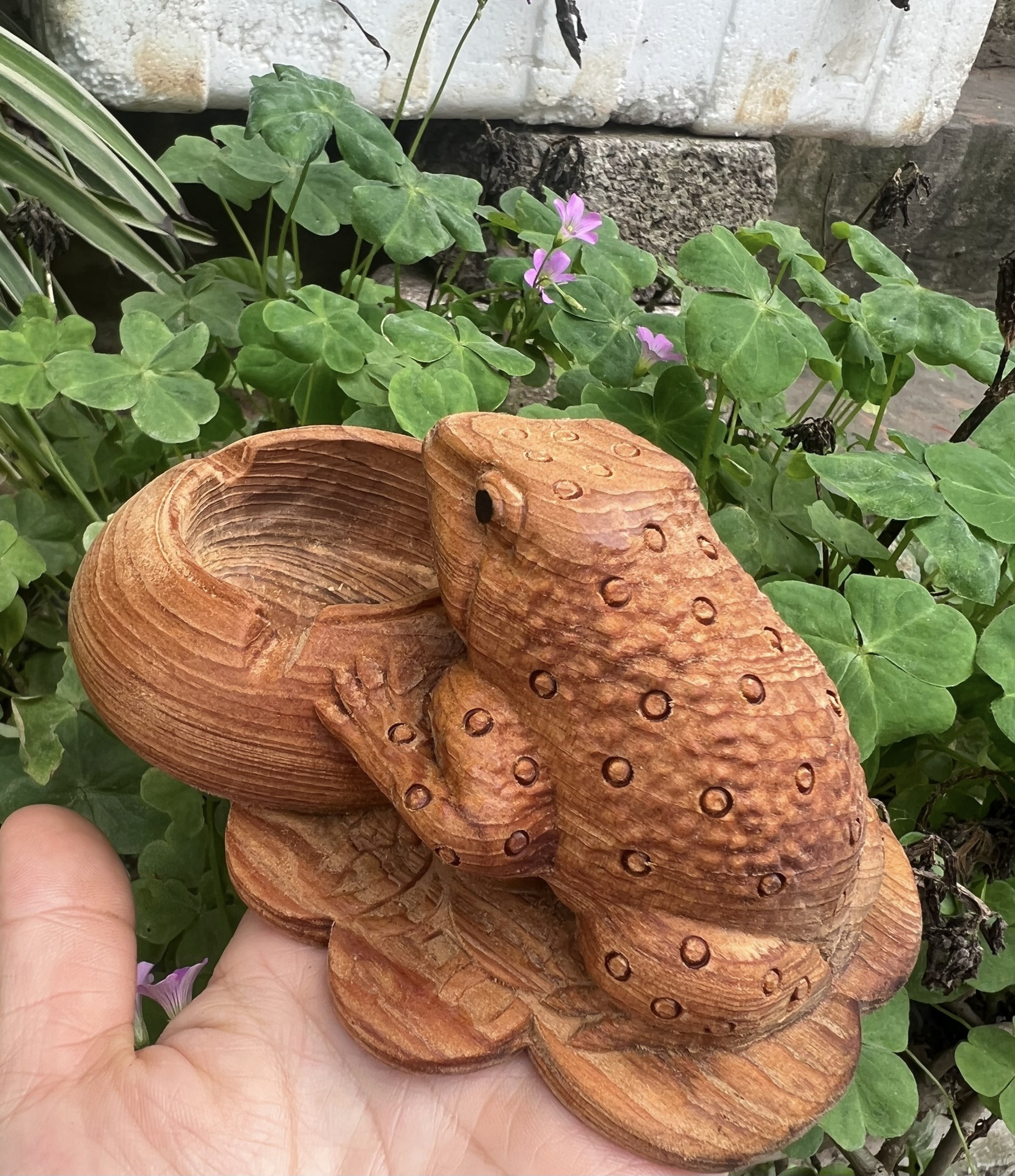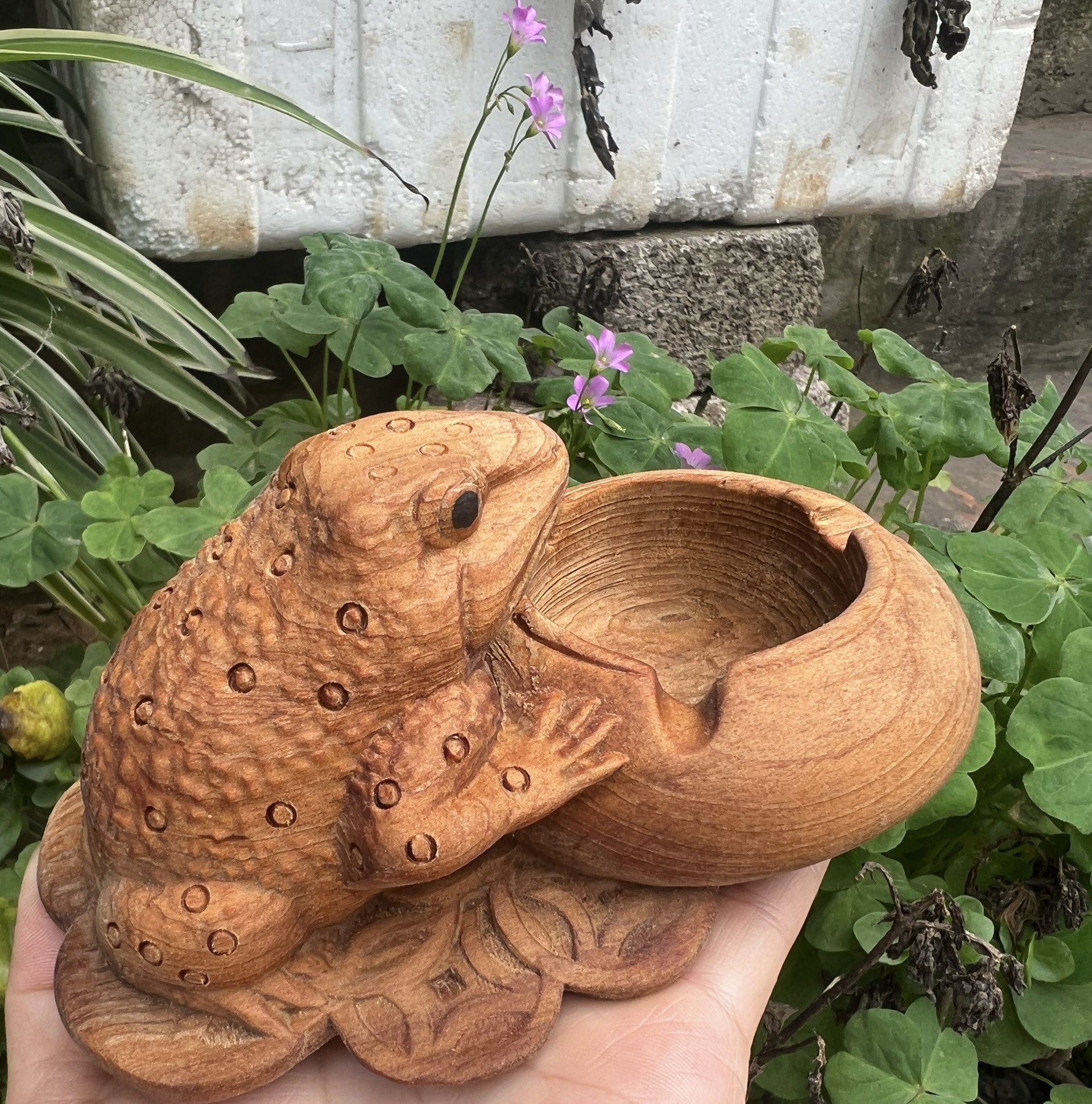 ✨Gạt tàn khắc con cóc tài lộc bằng gỗ ngọc am thơm nức kt 15×10×7cm