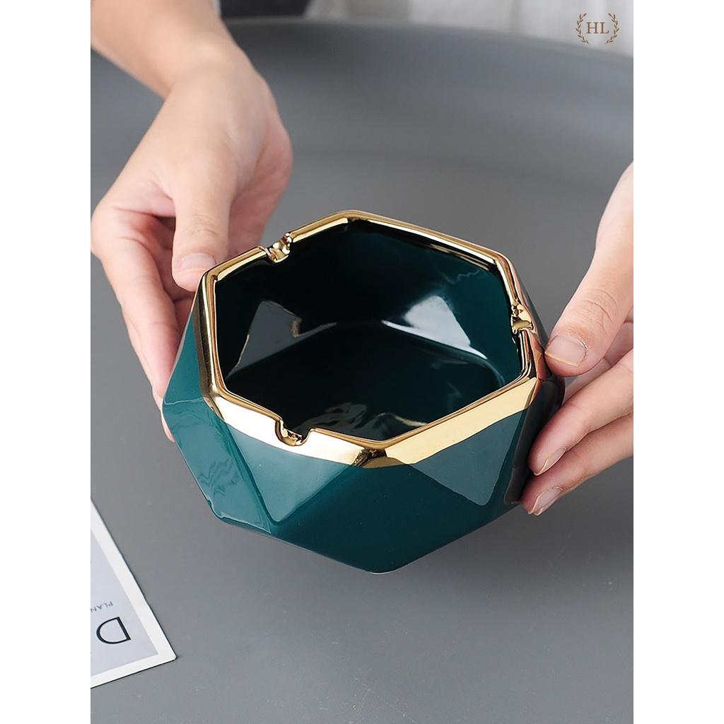 ✨Gạt Tàn Sứ | Gạt Tàn Hoàng Kim Chất Liệu Sứ Kẻ Viền Vàng Phong Cách Tân Cổ Điển NORDIC