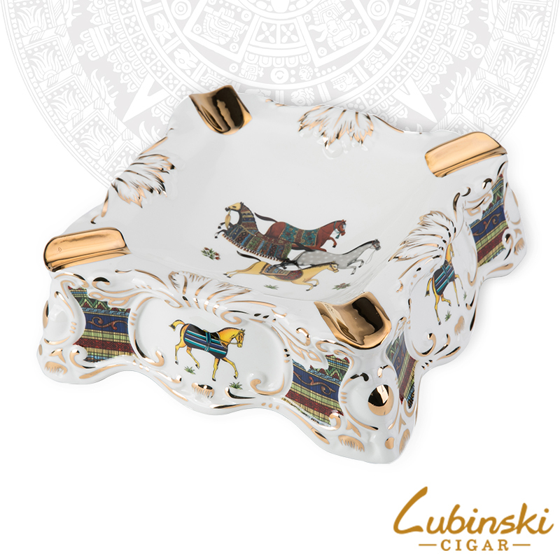 Gạt tàn x.ì g.à 2 điếu chính hãng Lubinski | Hoa văn tân cổ điển hình con Ngựa AS120 | Ambe