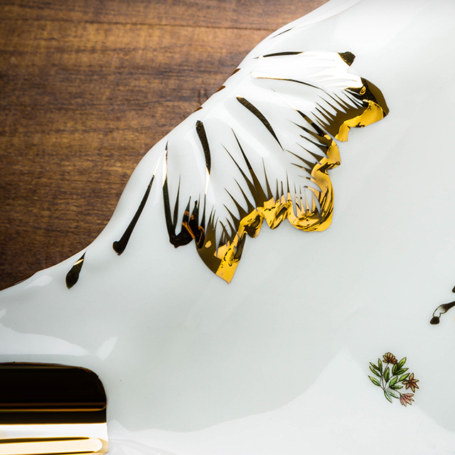 Chất liệu: Gốm Sứ Màu sắc: Trắng & Vàng & Đen Kích thước: 120*68*25 MM Trọng lượng: 138g