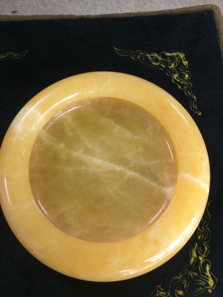 Gạt tàn đá ngọc hoàng long tự nhiên size 12cm.✅️ Chất ngọc đẹp, bóng mịn mướt, thấu quang toàn phần