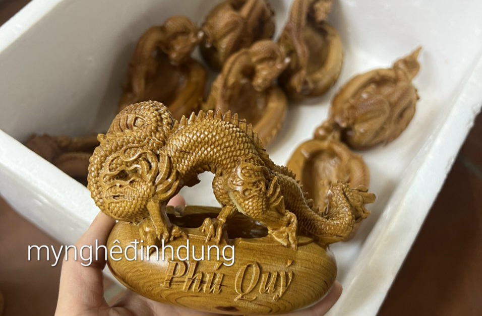 ✨Gạt tàn thuốc là khắc rồng bằng gỗ bách xanh thơm nức kt 15×10×9cm