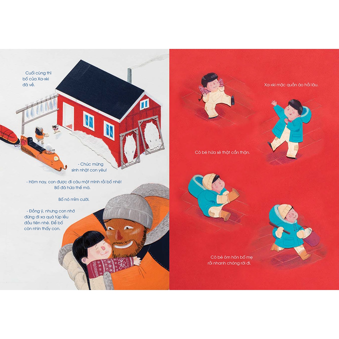 Hôm nay là sinh nhật của cô bé Xa-xki của bộ tộc Inuit sống ở vùng Bắc Cực. Cô bé đang đi câu cá một mình.