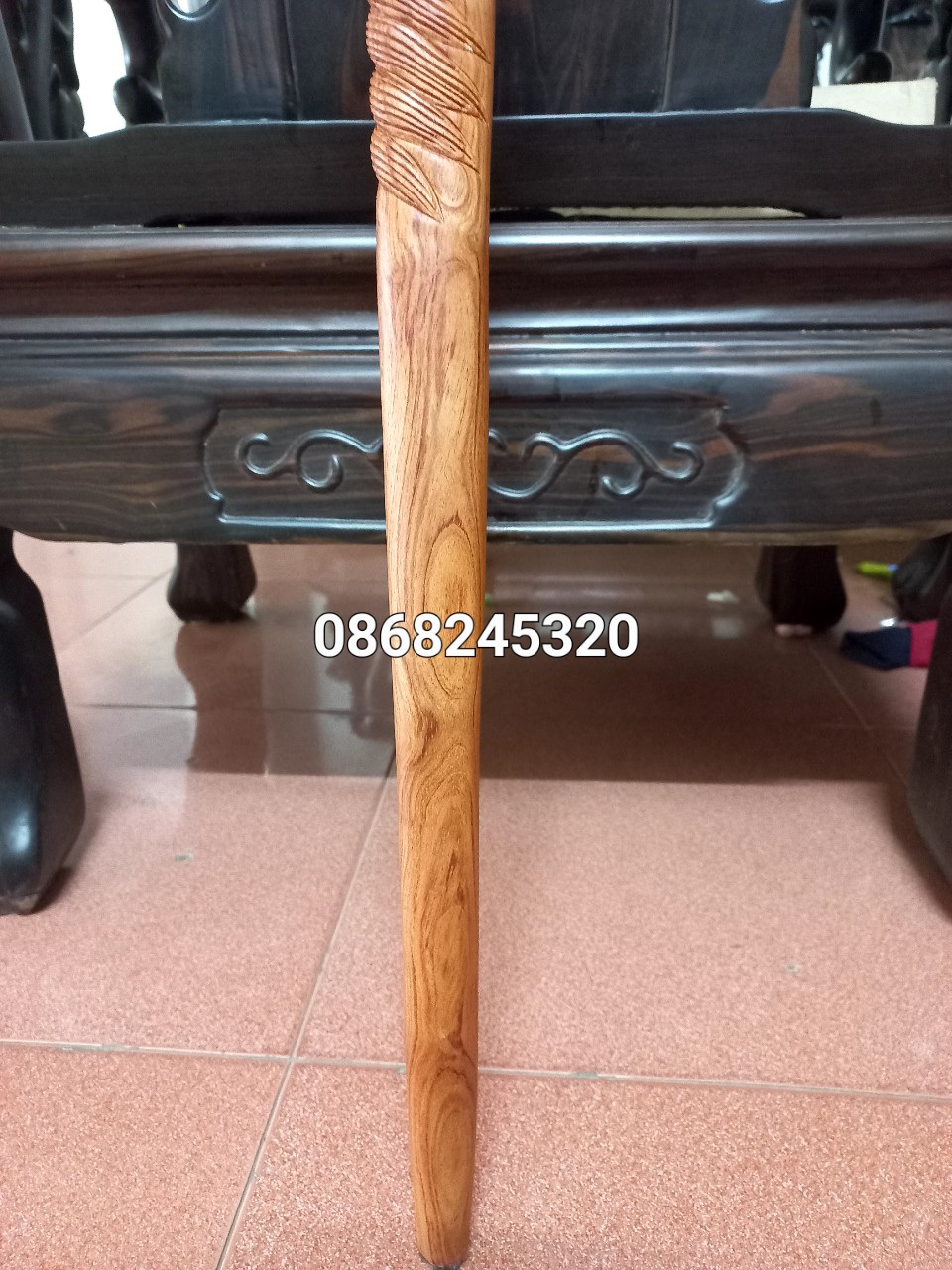 _ Gậy batong hỗ trợ đi lại dành cho người già được làm bằng chất liệu gỗ trắc đỏ đen tự nhiên 100% _ Kt dài 90 kt tay cầm chống 13cm kt thân gậy