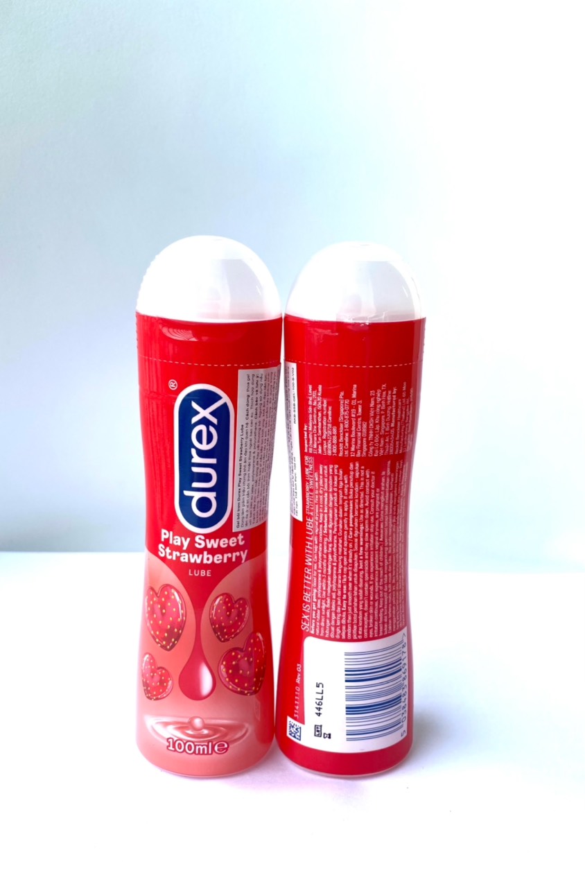 - Sau khi sử dụng, gel dễ dàng rửa sạch và không lưu lại thành phần nào trong cơ thể. Gel an toàn khi sử dụng chung với các loại bao cao su cũng như có thể dùng chung với các loại gel bôi trơn khác. Thông tin thương hiệu: DUREX thuộc công ty Reckitt Benckisier. Gel bôi trơn hương dâu Durex Play Strawberry Hướng dẫn sử dụng Kem bôi trơn hương dâu Durex Play Strawberry: