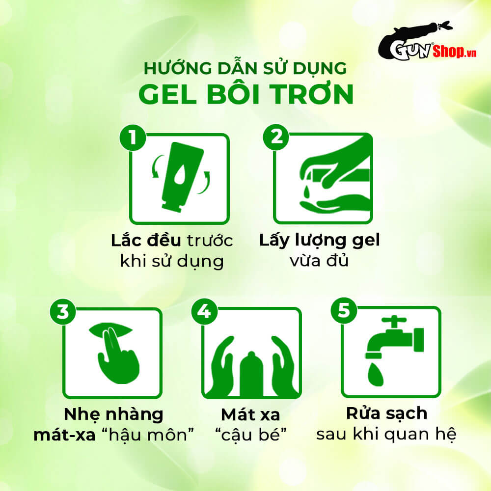 ✪ Cách dùng: Lắc đều sản phẩm trước khi sử dụng. Lấy một lượng gel vừa đủ bôi trực trực tiếp lên vùng hậu môn, “cậu bé”. Tiến hành massage cho gel thấm đều và bắt đầu quan hệ. Vệ sinh sạch cơ thể hoặc các dụng cụ hỗ trợ với nước ấm.