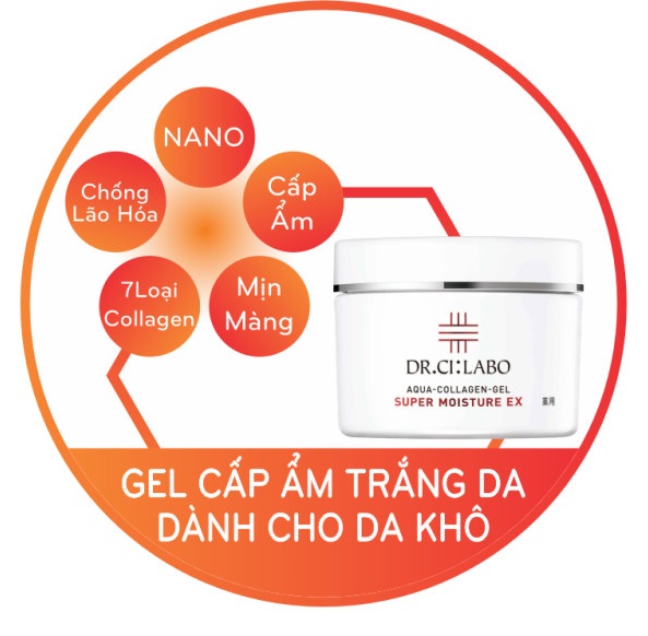 Gel siêu dưỡng ẩm Dr.Ci:Labo được tăng cường 7 loại Collagen chống lại các nếp nhăn hiệu quả, ngoài ra với công nghệ Nano tiên tiến độc đáo của Dr.Ci.Labo “VIÊN NANG NANO COLLAGEN HC ”*PHÙ HỢP CHO DA KHÔ SẦN .