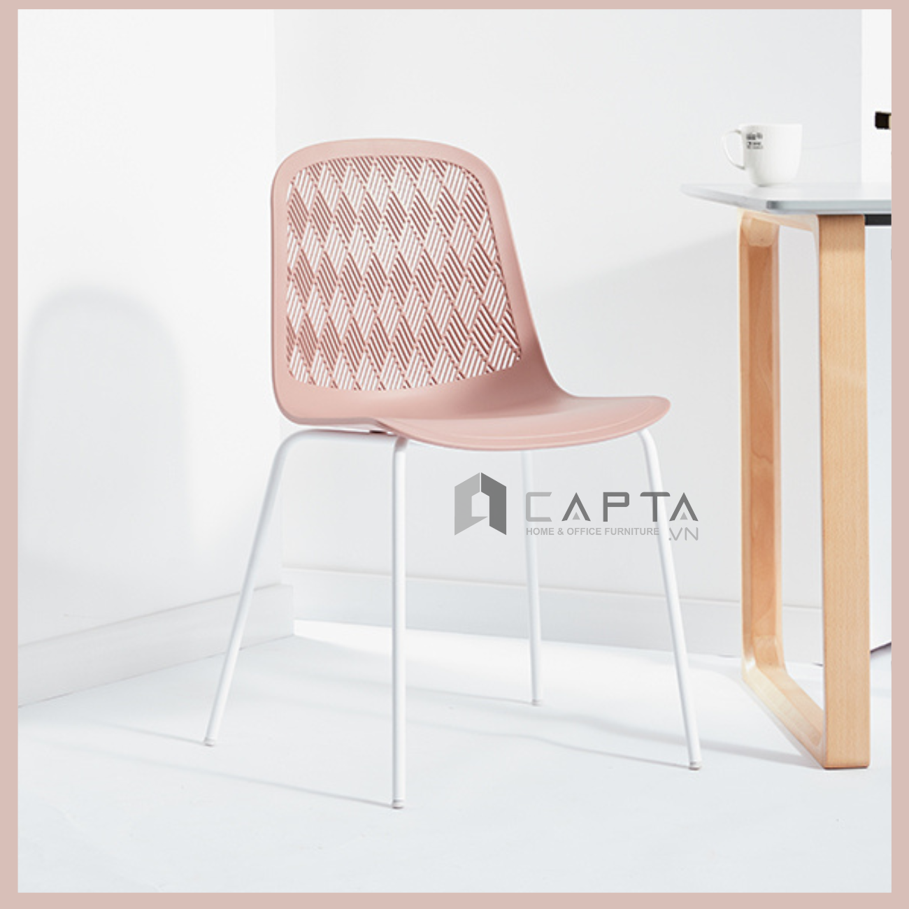 Thân ghế được làm từ chất liệu nhựa PP cao cấp tạo ra sự thoải mái và an toàn cho người sử dụng. Với thiết kế lưng ghế cách điệu hình hoa văn, màu sắc đa dạng tạo nên sự trẻ trung và tô điểm cho quán cafe, nhà hàng, quán trà sữa, văn phòng,…
