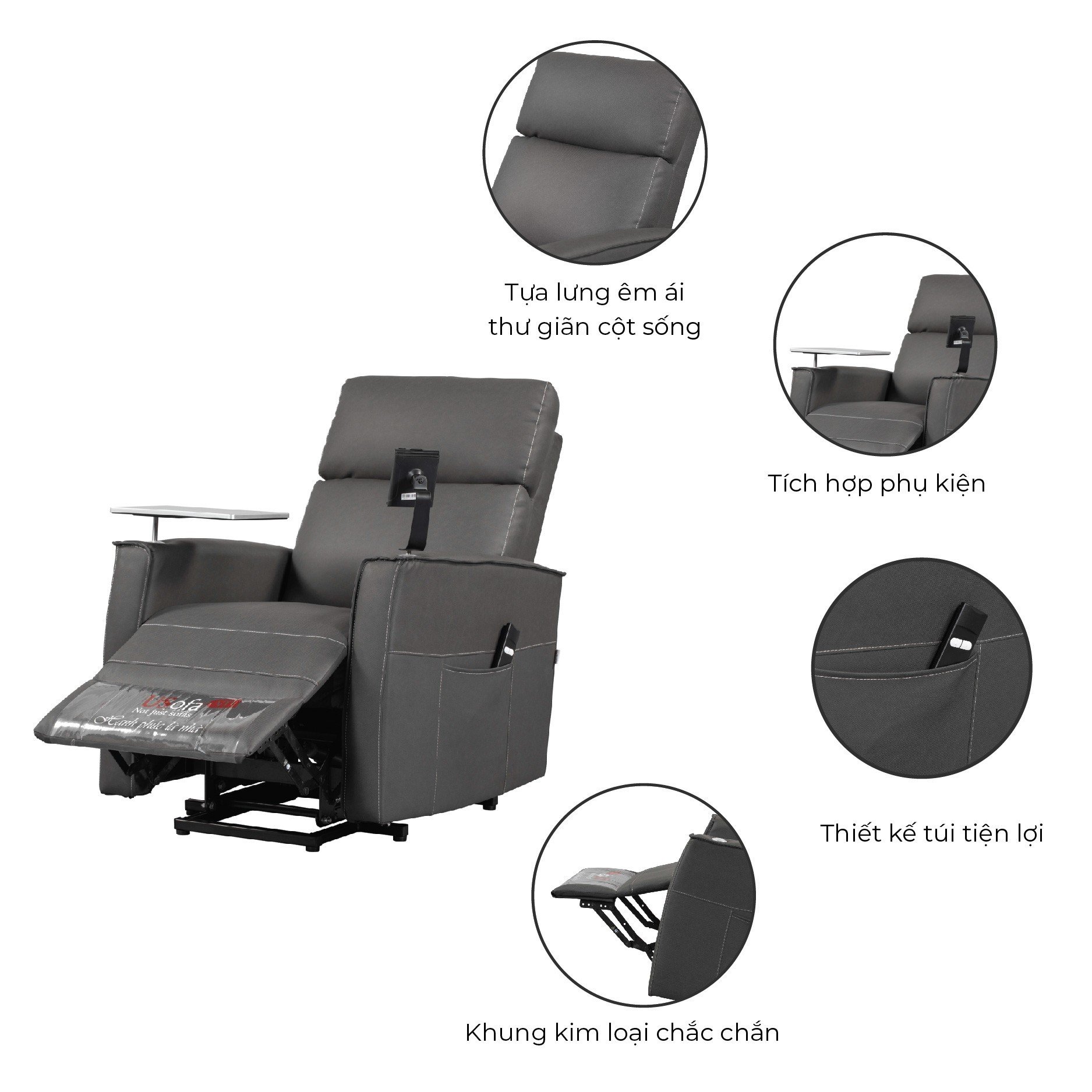 - Đặc trưng Ghế có thể nâng lên, hỗ trợ người cao tuổi đứng lên dễ dàng. Ghế hạ xuống dễ dàng, ôm lưng, vải da êm ái dịu dàng. Ghế ngã ra giúp người dùng có thể thư giãn trong thời gian dài. Thư giãn, giải trí dễ dàng với phụ kiện hỗ trợ.