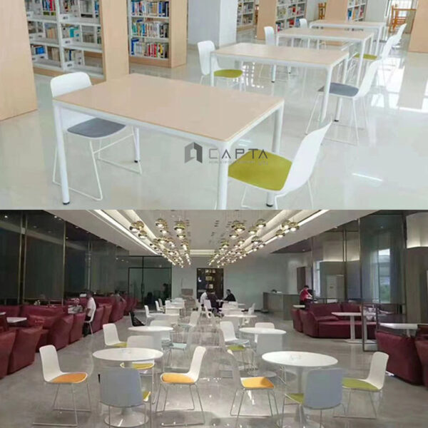 - Thiết kế hiện đại phù hợp ghế tiếp khách, ghế thư viện, ghế cafe fastfood,… Mẫu ghế đào tạo CC1552-P với kiểu dáng hiện đại phù hợp nhiều phối cảnh. Ghế màu trắng là gam màu được sử dụng nhiều nhất trong thiết kế nội thất. Tông màu trắng tạo cảm giác trẻ trung và giúp không gian nhỏ hơn trông rộng lớn. Ghế CC1552-P thân nhựa cứng chắc, dễ dàng vệ sinh các vết bẩn. Chân vòng sắt sơn tĩnh điện đẹp mắt. Thiết kế kiểu chân này dễ dàng xếp chồng ghế lên nhau tiện lợi cho việc di chuyển và lưu kho. Bên dưới hai khung chân ghế được trang bị nút nhựa trắng đồng bộ có tác dụng giảm tiếng ồn khi dịch chuyển ghế cũng như tránh gây trầy xước mặt sàn. Ghế có nệm ngồi vải bố nhiều màu sắc cam, xám, xanh dương, xanh chuối. Phù hợp ghế tiếp khách, ghế thư viện, ghế cafe fastfood,…