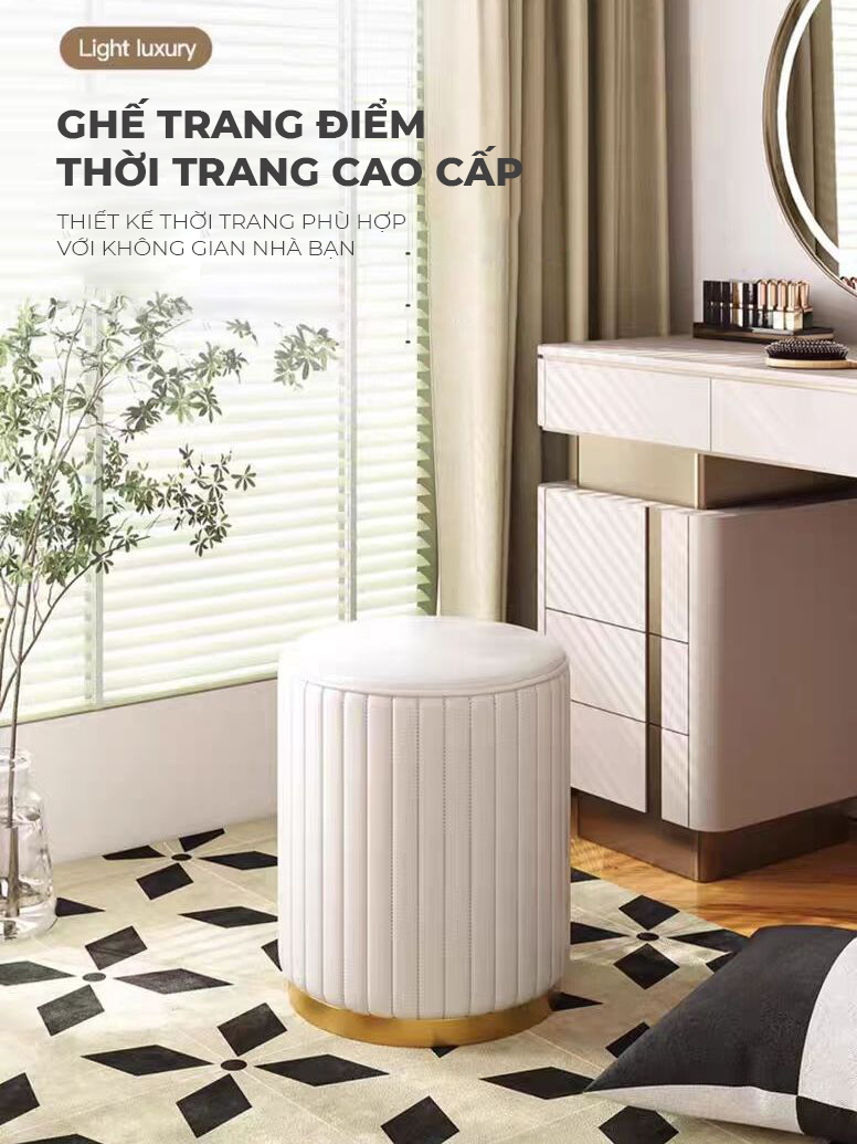 Ghế Đôn Tròn Ngồi Bàn Trang Điểm Phong Cách Bắc Âu, Đôn Tròn Sofa (Cao 45cm - Đường Kính 35cm)