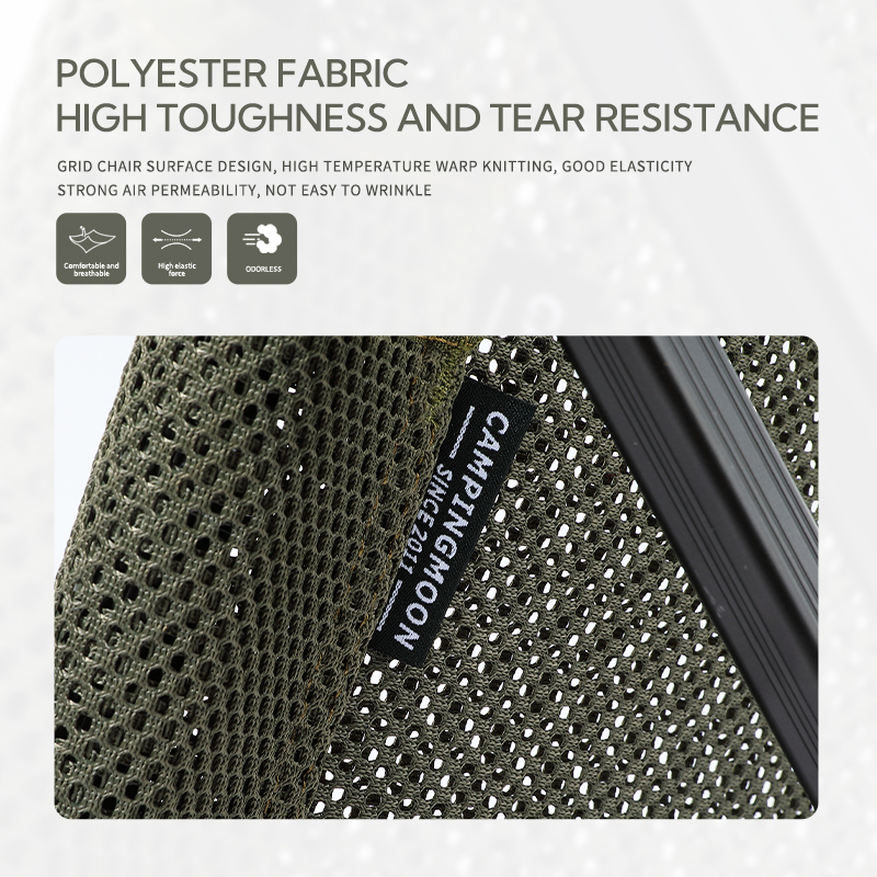 MÔ TẢ SẢN PHẨM Ghế lưới Owaga gấp gọn Campingmoon chất liệu vải Polyester dạng lưới đàn hồi tốt, thoáng khí thích hợp với mùa hè, thu. Khung ghế hợp kim nhôm dạng ống dày
