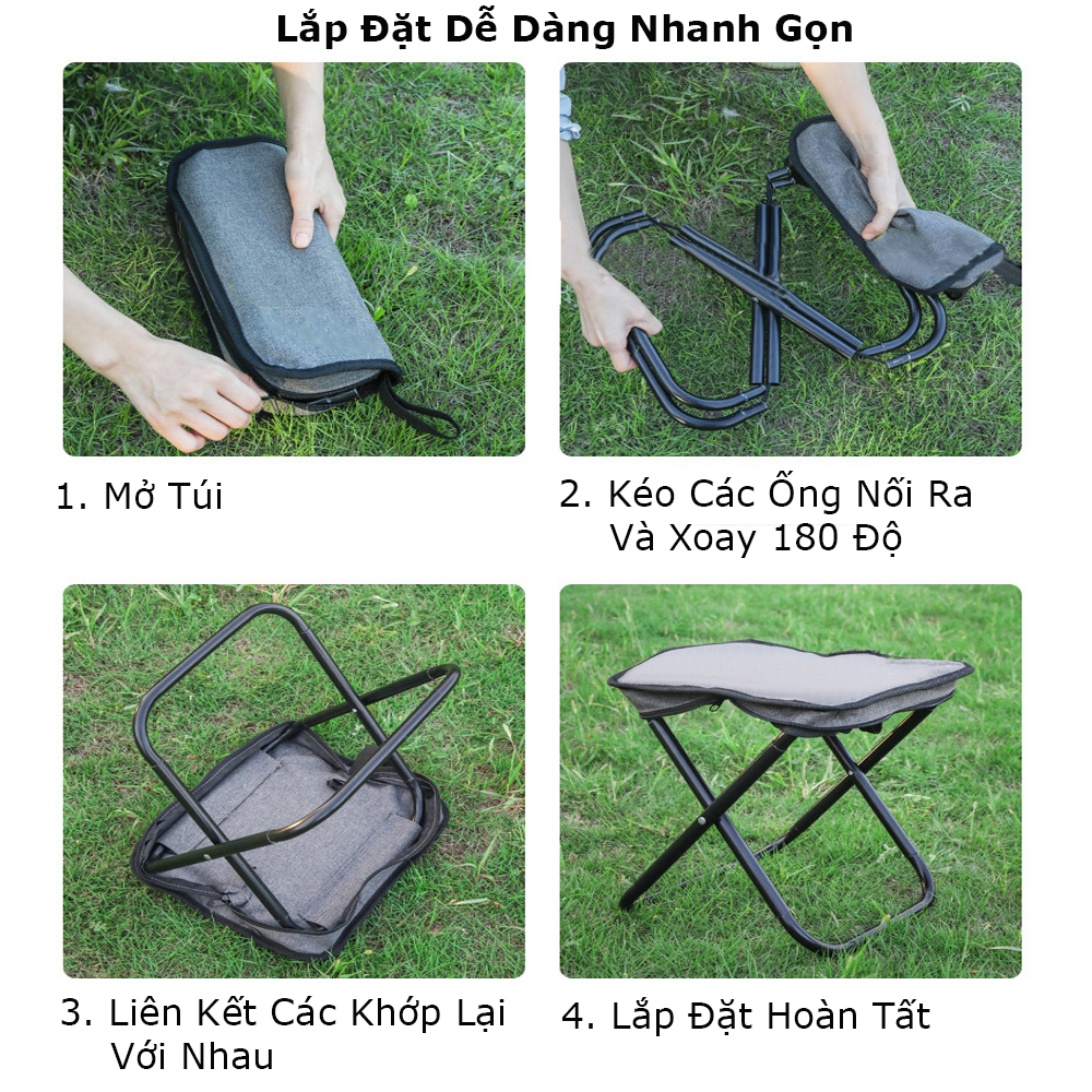 Thông tin sản phẩm: Chất liệu: Khung thép chịu lực - Vải Oxford chống thấm nước Màu Sắc: Xanh dương - Xanh lá - Đen Kích Thước Ghế mở rộng: 34 X 29 X 58