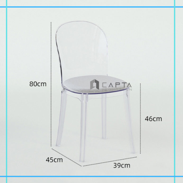 - Kích thước: 390450460/800 mm Ghế nhựa đúc trong suốt tăng chiều sâu không gian. Ghế có nệm ngồi êm, màu xám sạch sẽ. Ghế ngồi trang điểm ICE 2A-PC nhựa PC cứng chắc. Màu trắng trong suốt giúp bạn có thể nhìn xuyên qua ghế mà không bị cản trở tầm nhìn. Điều này làm tăng diện tích và tạo chiều sâu không gian. Bên cạnh đó, chất liệu nhựa PC không cản ánh sáng giúp cho chiếc ghế sáng sủa hơn, thu hút ánh nhìn. Lưng ghế bo tròn trông ghế thêm thanh mảnh. Lưng ghế gắn liền với bề mặt ngồi tạo kết cấu vững chắc cho tổng thể chiếc ghế. Nệm ghế vải bố êm, màu xám nhẹ nhàng, sạch sẽ. Ghế nhựa đúc có nệm ngồi ICE 2A-PC phù hợp sử dụng nhiều mục đích khác nhau như ghế cafe, ghế tiếp khách, ghế ăn, ghế nhà hàng, ghế tiệc cưới,… Hàng nhập khẩu được sản xuất dây chuyền máy móc hiện đại, đường nét sắc xảo tinh tế, chất lượng tốt. Ghế ngồi trang điểm nhựa trong suốt có nệm vải Ghế phòng ăn Ghế nhà hàng ICE 2A-PC