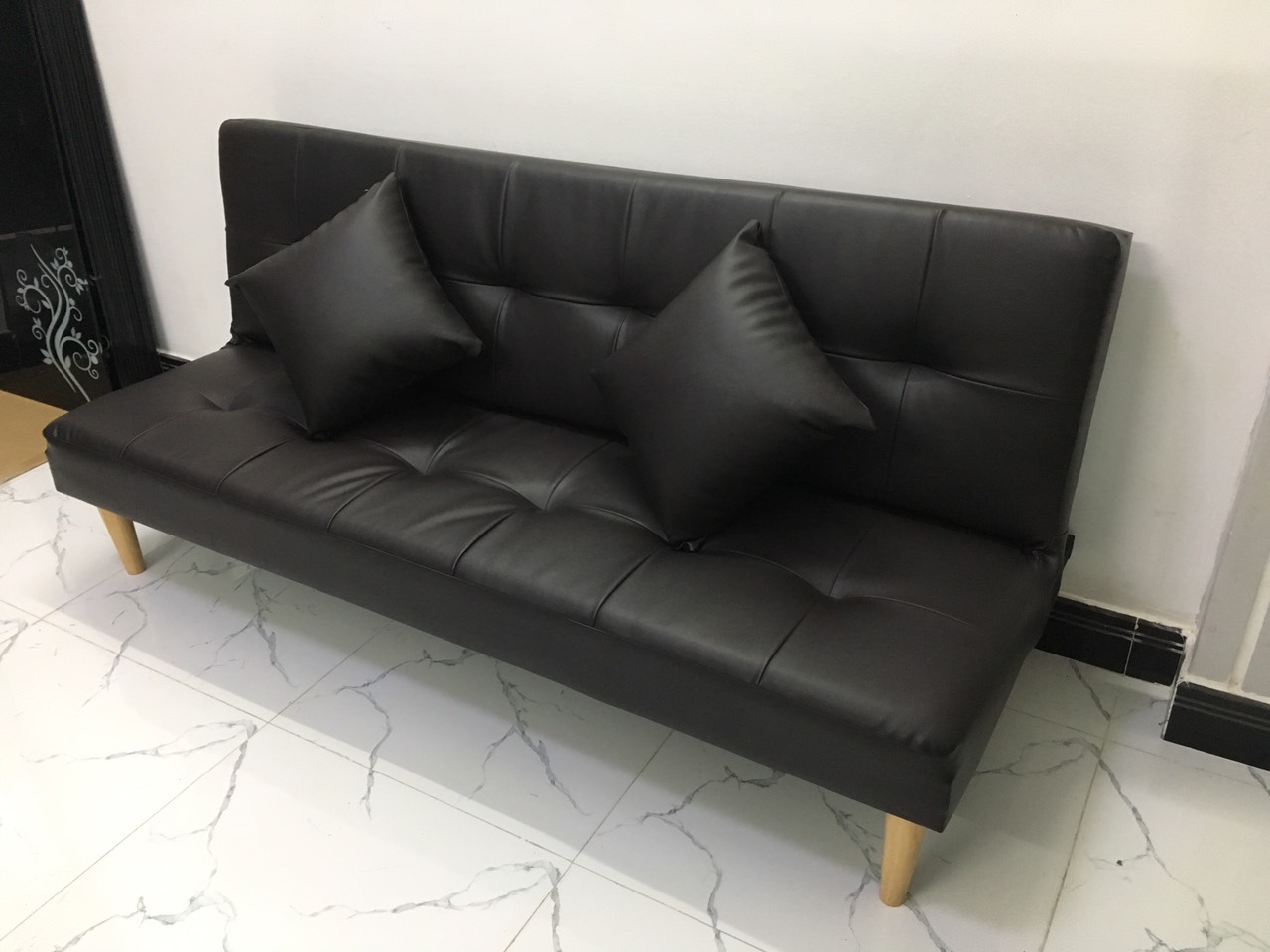 Sofa bed, sofa giường 1m7x90, có thể bật ra thành giường để nằm Kích thước 1m7x90 (kích thước phổ thông) Chất liệu: khung gỗ dầu, mút d30, simili Bao gồm: ghế dài 1m7x90, 2 gối ôm The sofa can be unfold to be bed Size: 170cm x 90 including sofa bed, 2 cushions
