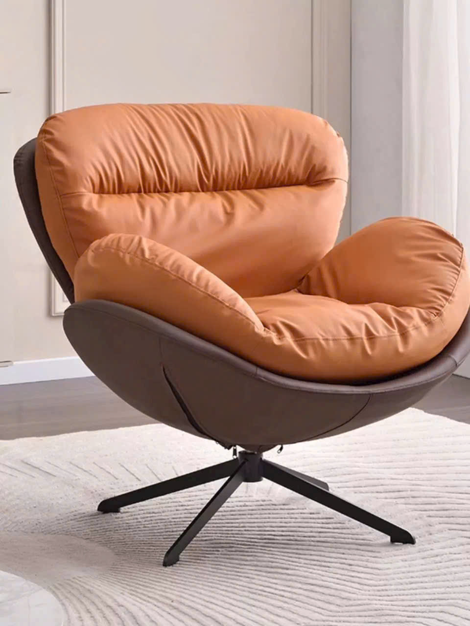 Ghế sofa đơn hiện đại màu cam đất CL1215-P Nội thất Capta Ghế sảnh chờ nệm da PU mềm màu cam đất cao cấp chân xoay thép sơn tĩnh điện màu đen - Màu sắc:
