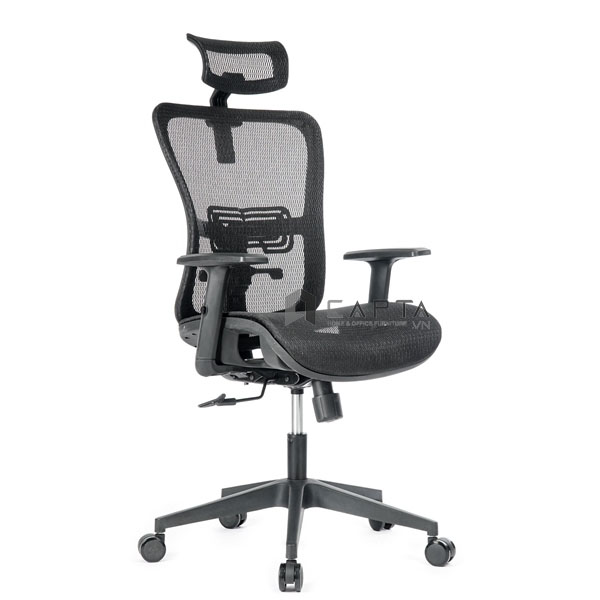 Ghế xoay tựa đầu làm việc văn phòng lưng lưới có tay gập