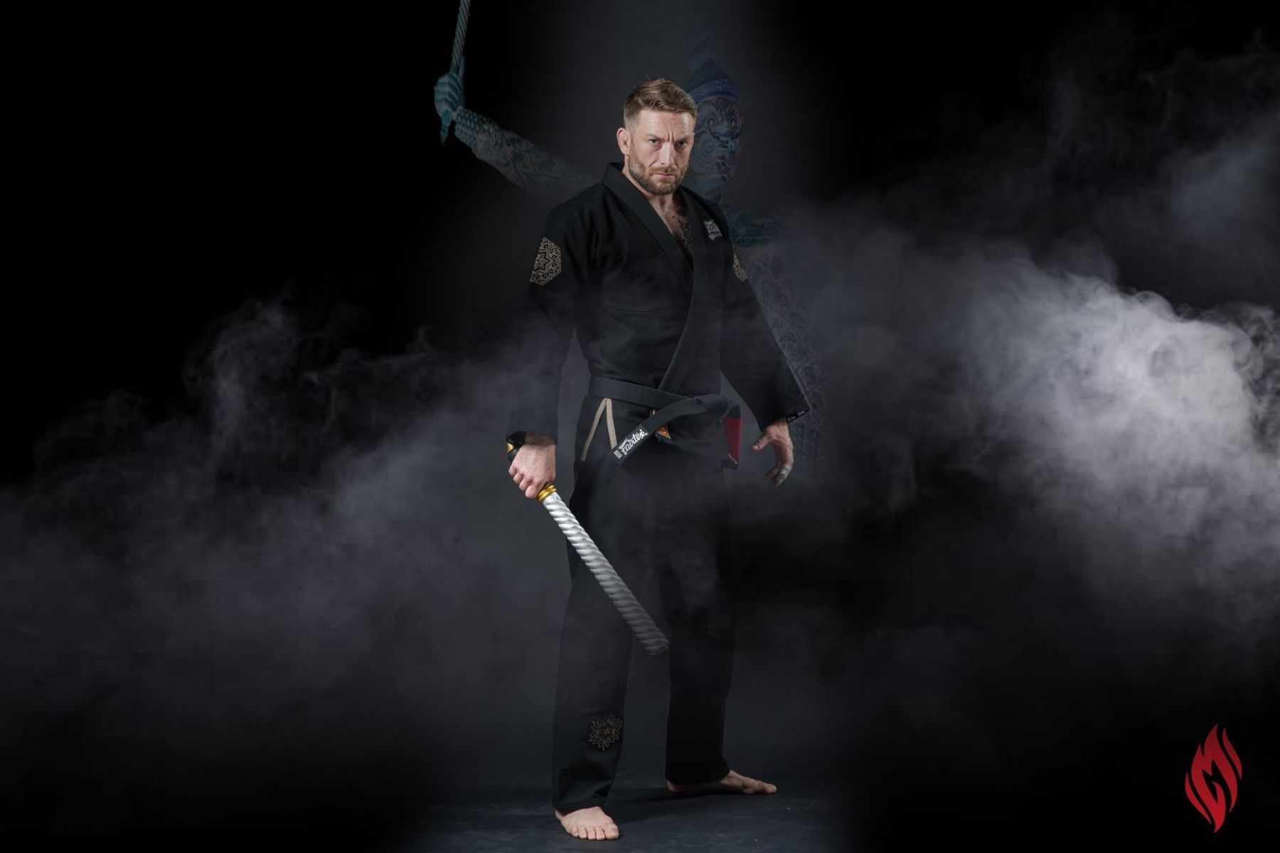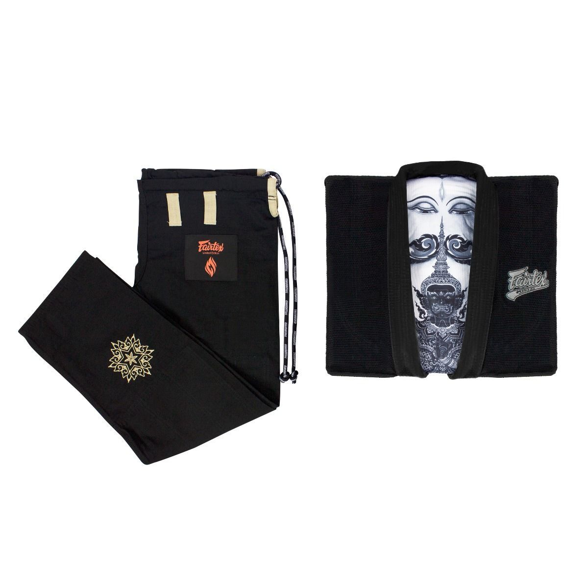 Vì vậy, Fairtex đã thiết kế bộ đồ tập với màu đen, được trang trí hoa văn Thái Lan nguyên bản với việc sử dụng ngọn lửa đỏ làm logo của sản phẩm này. Ngoài đặc tính bền và nhẹ của vải, thiết kế độc đáo của bộ chiến đấu này là kiệt tác ngẫu hứng acrylic theo thiết kế Thái Lan của một nghệ sĩ nổi tiếng và đã mất hơn một năm thời gian để tạo ra tác phẩm nghệ thuật này. khoe thiết kế lớp lót đẹp.