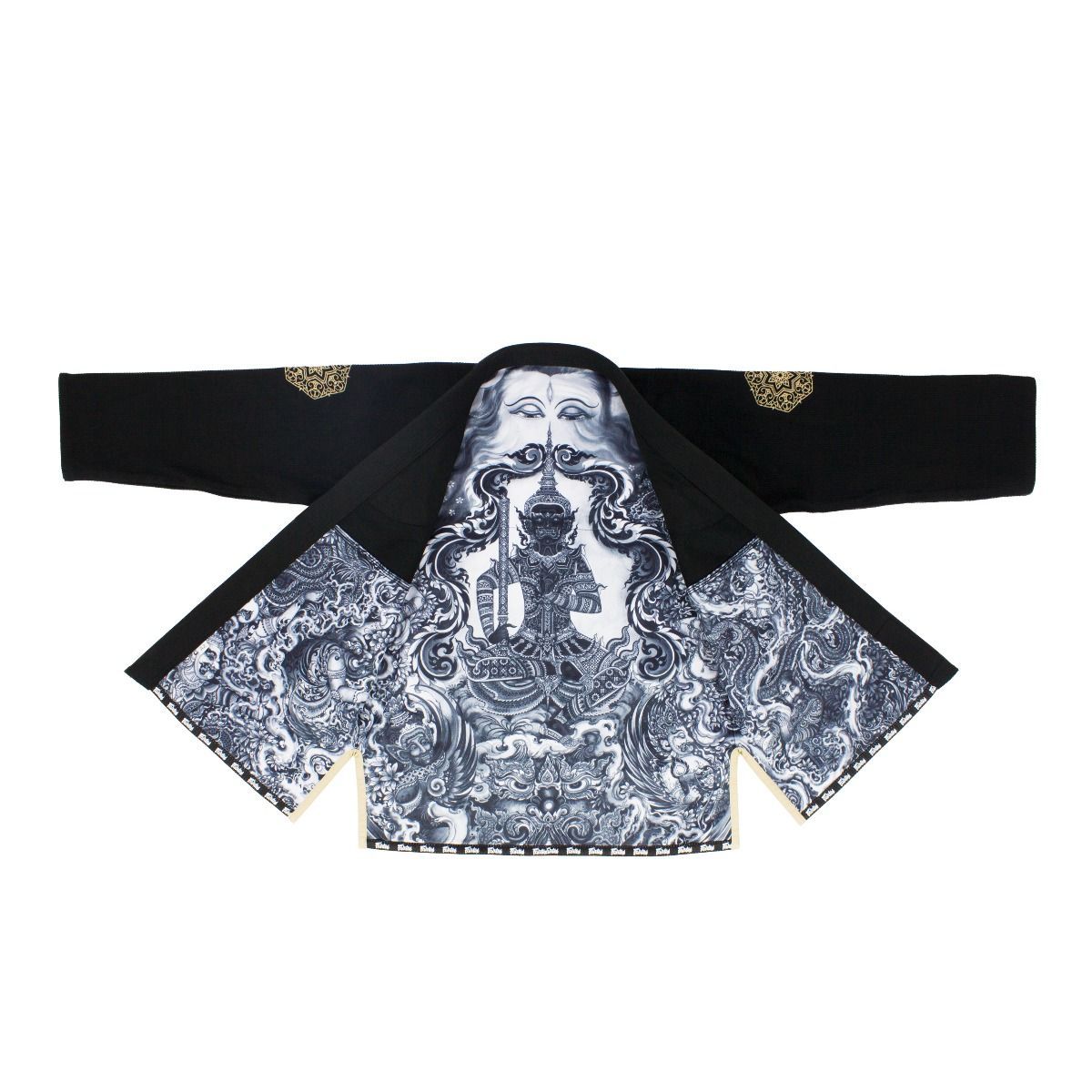 Kích thước có sẵn: A0 và A4 Gi đen trong sử thi nhân vật Ramayana có tên là "Treeburam"; người khổng lồ đen mạnh mẽ Áo khoác: 550 gam vải dệt ngọc trai, quần: 245