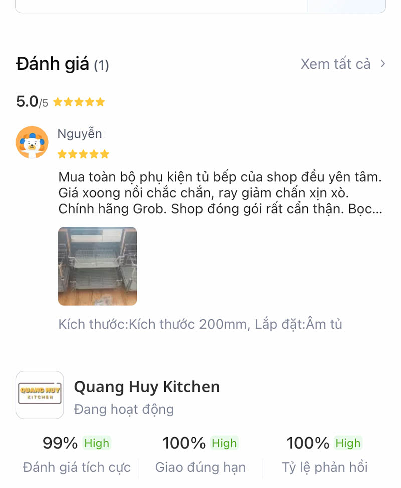 - Đánh giá của khách hàng sau khi mua giá dao thớt inox 304 nan dẹt tại Quang Huy Kitchen