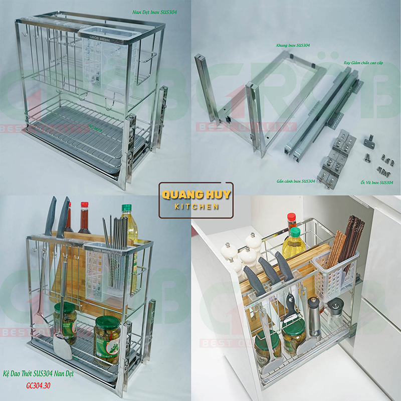 - Những lý do nên mua giá dao thớt inox 304 tại Quang Huy Kitchen