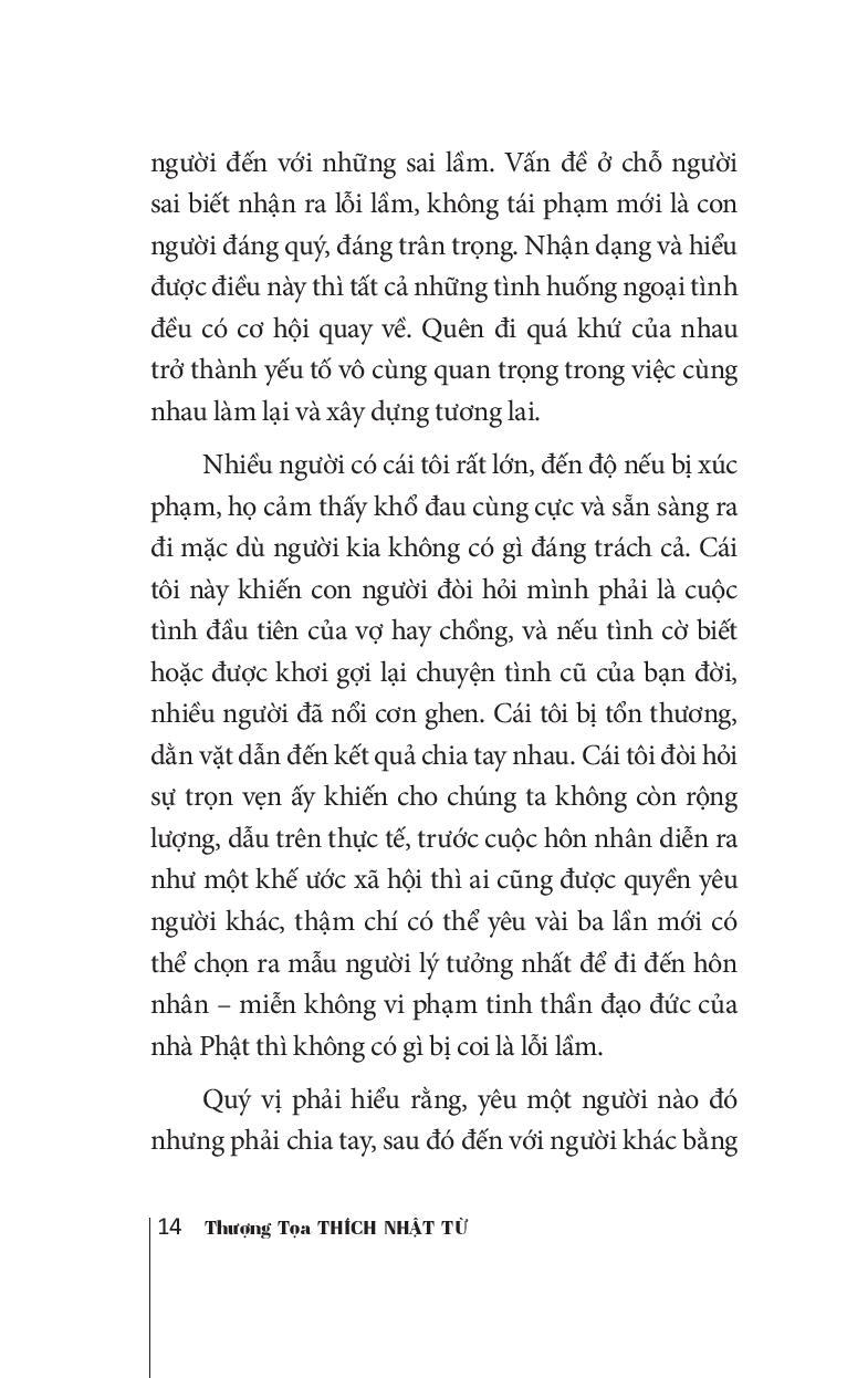 Có lẽ, nếu tổ chức một cuộc khảo sát để lập nên một bảng thống kê, so sánh giữa số gia đình hạnh phúc viên mãn với những gia đình bất hạnh, chúng ta sẽ phải chấp nhận một sự thật rằng, những người may mắn có cuộc hôn nhân đầm ấm trọn vẹn chiếm tỷ lệ rất thấp trong xã hội này. Những bất hạnh, đau khổ đa phần đều do chính mình gây ra cho người thân, mà trực tiếp ở đây là vợ chồng, con cái, dẫn đến thương tổn cho những thành viên khác trong đại gia đình và rộng hơn là ảnh hưởng đến cả xã hội. Những bất hạnh đó bắt nguồn từ các sai lầm, và sai lầm lại là thuộc tính của người phàm. Kinh điển của nhà Phật dạy có hai hạng thánh trong cuộc đời, hạng thứ nhất là chưa từng sơ xuất cũng như lỗi lầm; hạng thứ hai là người biết đứng dậy sau khi vấp ngã và không bao giờ tái phạm. Đức Phật cũng nói, hạng thánh nhân thứ hai mới đáng tôn kính và tán thán hơn cả Khi tìm hiểu kỹ hơn chúng ta sẽ hiểu, Đức Phật thấy rõ tâm lý con người có những lúc rất yếu. Trong lúc tâm lý bị sa sút tới mức độ yếu nhất thì bất kỳ thứ gì đến cũng sẽ trở thành cái nêm gài vào sự trống vắng dẫn dắt con người đến với những sai lầm. Vấn đề ở chỗ người sai biết nhận ra lỗi lầm, không tái phạm mới là con người đáng quý, đáng trân trọng. Nhận dạng và hiểu được điều này thì tất cả những tình huống ngoại tình đều có cơ hội quay về. Quên đi quá khứ của nhau trở thành yếu tố vô cùng quan trọng trong việc cùng nhau làm lại và xây dựng tương lai. Gia đình - Tranh đấu hay buông xuôi? là cuốn sách thứ 2 trong bộ 3 quyển của Thượng Tọa Thích Nhật Từ. Hy vọng những chia sẻ trong cuốn sách nhỏ này sẽ phần nào giúp quý độc giả tìm được cách giải quyết những xung đột, mâu thuẫn có thể gặp trong cuộc sống của mình .