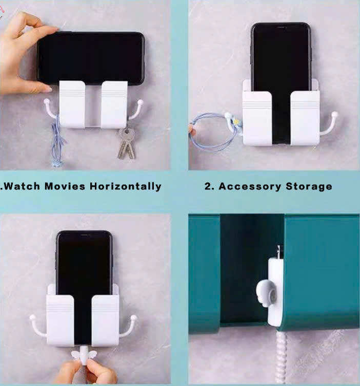 ✨Giá Đỡ Dán Tường Có Khe Để Sạc Điện Thoại Và Tai Móc Treo Chìa Khóa, Remote Tiện Lợi
