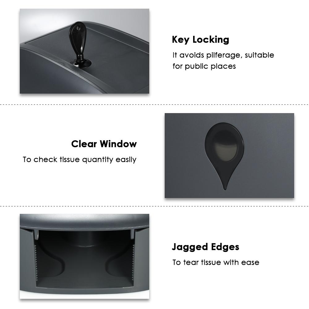 Key Lock Feature: comes with a key, which makes refilling the rolls quick and easy as well as avoids pilferage.