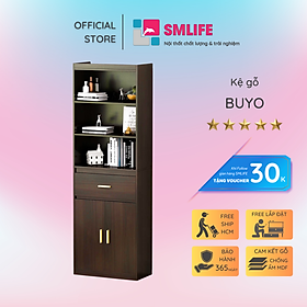Mua tại TiktokKệ sách SMLIFE Buyo được ví như một tác phẩm nghệ thuật với phong cách đơn giản sẽ giúp bạn xắp sếp những cuốn sách một cách sành điệu và độc đáo. Kệ sách Buyo mang đến sự tinh tế, hiện đại cho phòng khách của bạn và đồng thời cung cấp một không gian lớn cho các vật dụng trang trí. Sản phẩm phù hợp cho mọi phong cách trang trí căn hộ và văn phòng làm việc. Sử dụng vật liệu ván ép công nghiệp MDF chống ẩm phủ Melamine cao cấp giúp kệ sách SMLIFE có độ bền cao, chống trầy và chống ẩm rất tốt. Bạn có thể tự lắp đặt sản phẩm dễ dàng với các phụ kiện và hướng dẫn đi kèm. ĐẶC ĐIỂM SẢN PHẨM: