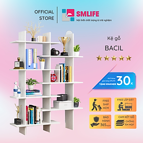 Mua tại TiktokKệ sách SMLIFE Bacil được ví như một tác phẩm nghệ thuật với phong cách đơn giản sẽ giúp bạn xắp sếp những cuốn sách một cách sành điệu và độc đáo. Kệ sách Bacil mang đến sự tinh tế, hiện đại cho phòng khách của bạn và đồng thời cung cấp một không gian lớn cho các vật dụng trang trí. Sản phẩm phù hợp cho mọi phong cách trang trí căn hộ và văn phòng làm việc. Sử dụng vật liệu ván ép công nghiệp MDF chống ẩm phủ Melamine cao cấp giúp kệ sách SMLIFE có độ bền cao, chống trầy và chống ẩm rất tốt. Bạn có thể tự lắp đặt sản phẩm dễ dàng với các phụ kiện và hướng dẫn đi kèm. ĐẶC ĐIỂM SẢN PHẨM: