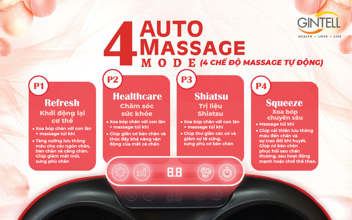 MÁY MASSAGE CHÂN GINTELL G- FEETIE PLUS **ƯU ĐIỂM NỔI BẬT +Được trang bị công nghệ mới nhất: Bạn có thể thoải mái di chuyển chân sang cả hai hướng, máy sẽ
