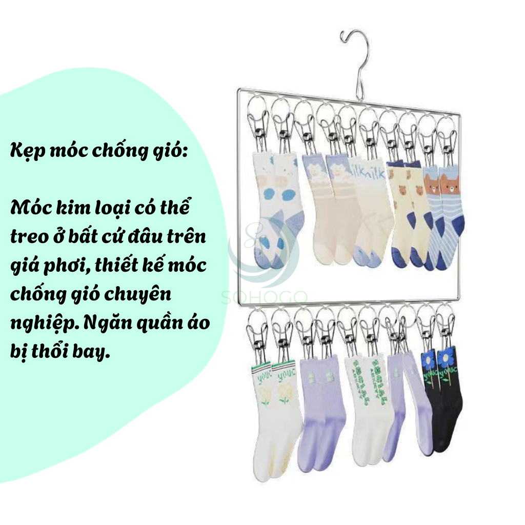 Mua tại TiktokMô tả sản phẩm: Móc Treo Đồ Đa Năng Inox là giải pháp hoàn hảo giúp bạn tiết kiệm tối đa không gian phơi đồ trong gia đình. Được thiết kế chắc chắn từ inox chống gỉ cao cấp, sản phẩm có độ bền vượt trội, không bị cong vênh hay oxy hóa khi sử dụng ngoài trời. Với 32 kẹp chắc chắn, bạn có thể phơi nhiều món đồ nhỏ như tất, khăn, đồ lót, khẩu trang, găng tay... mà không lo bị rơi hoặc xô lệch khi có gió mạnh. Thiết kế hình chữ nhật gọn nhẹ, dễ dàng treo trên lan can, dây phơi hoặc móc cửa phòng tắm. Khả năng xoay 360 độ linh hoạt, giúp bạn dễ dàng sắp xếp đồ và thu gọn khi không sử dụng. Sản phẩm phù hợp với mọi không gian sống từ chung cư, nhà phố đến ký túc xá. Cách dùng: