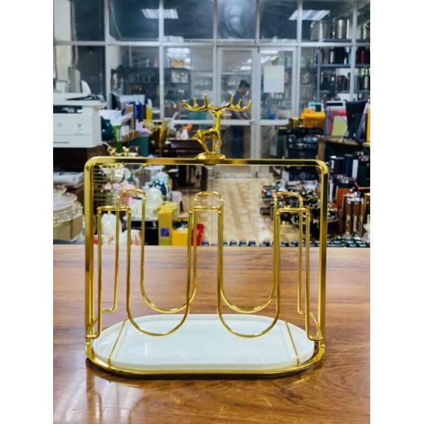 ✨Giá úp cốc kèm khay hứng nước hình đầu hươu vàng cao cấp