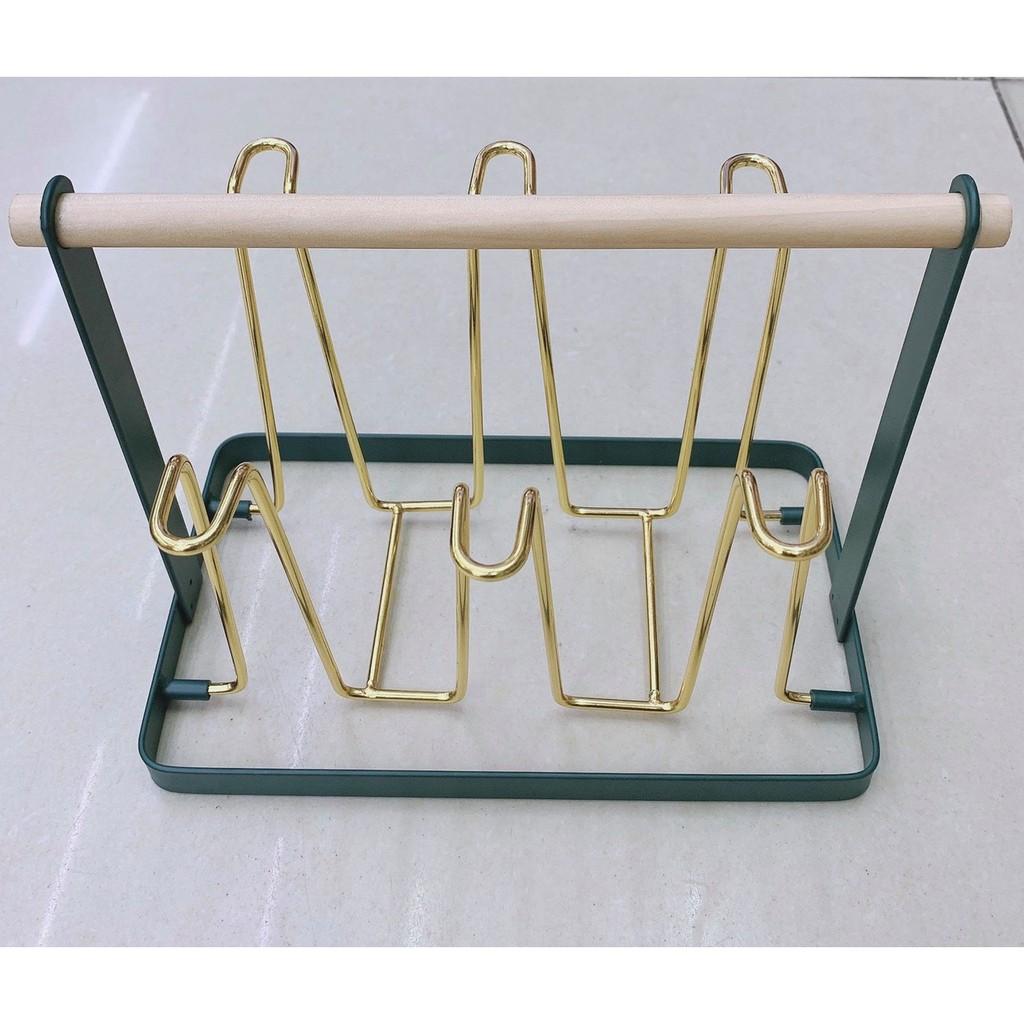 Giá cắm 6 chiếc cốc dạng gọn (CL95965) Giá có khay hứng nước Chất liệu sắt sơn tĩnh điện cao cấp màu vàng cực sang chảnh Dễ vệ sinh, không bị hoen rỉ Kiểu dáng