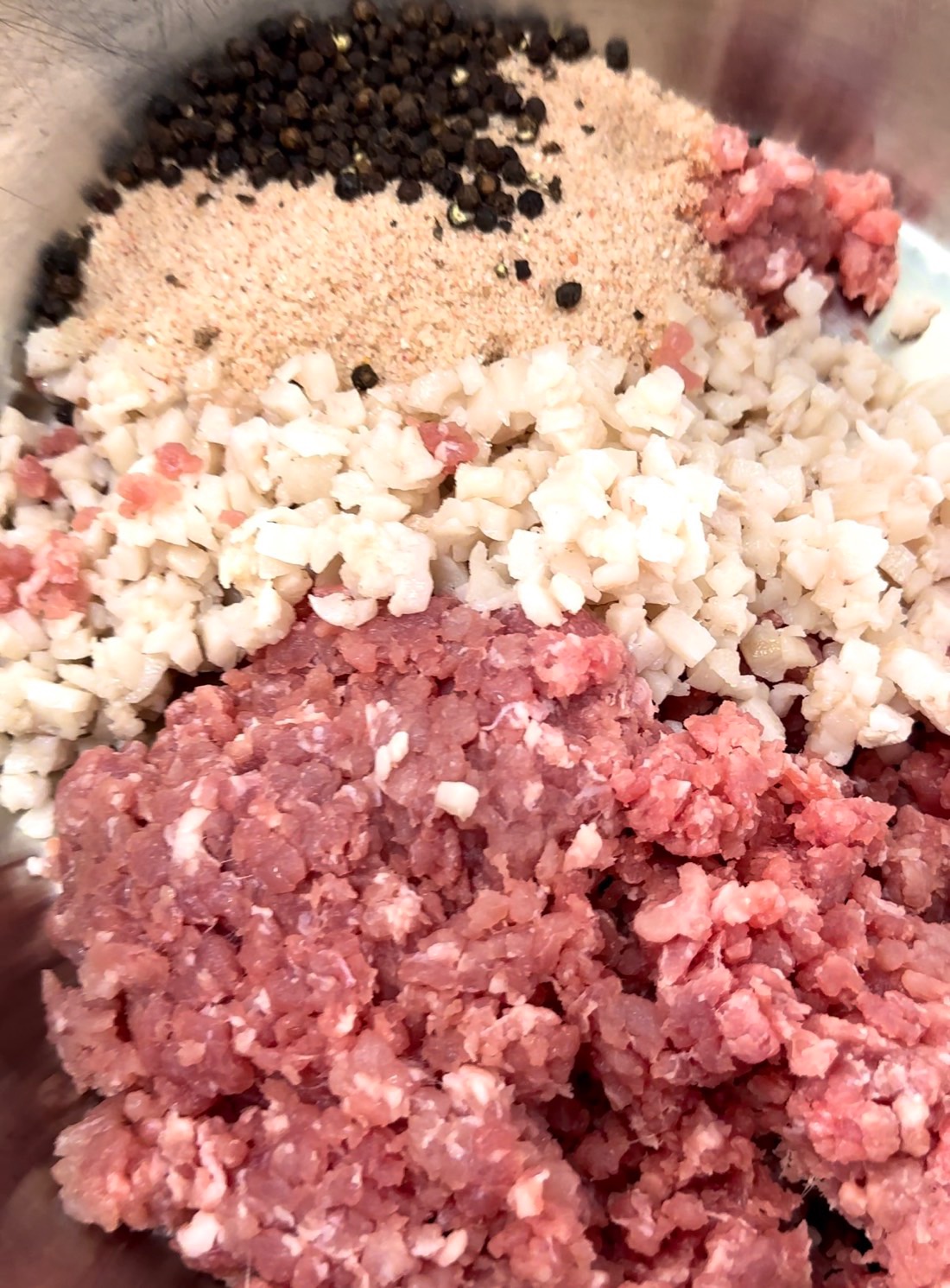 Nguyên liệu gồm có : - Gia vị trộn sẵn làm Lạp Xưởng: 150gr- 200gr. -Thịt nạc heo ( cắt hạt lựu ) 800gr -Mỡ heo (luộc rồi cắt hạt lựu )200gr Tiêu ( tuỳ thích)