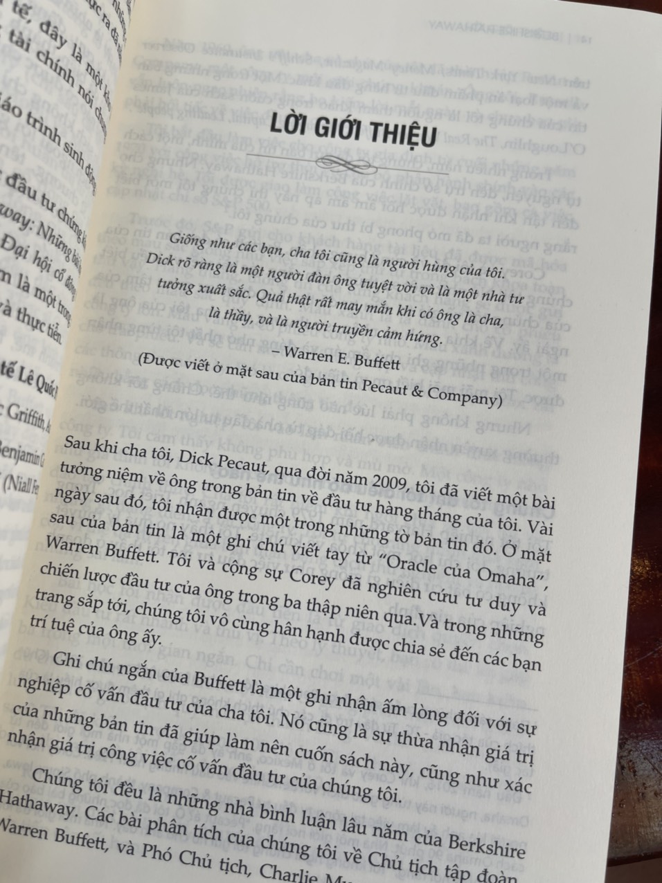 Berkshire Hathaway là một cuốn sách đáng chú ý về sự khôn ngoan vượt thời gian, hào phóng và thông minh dí dỏm của Warren Buffett (Chủ tịch kiêm CEO) cùng Charlie Munger (Phó chủ tịch) thông qua những chiến lược đầu tư được truyền lại cho các cổ đông trong suốt 30 năm tại các cuộc họp thường niên.