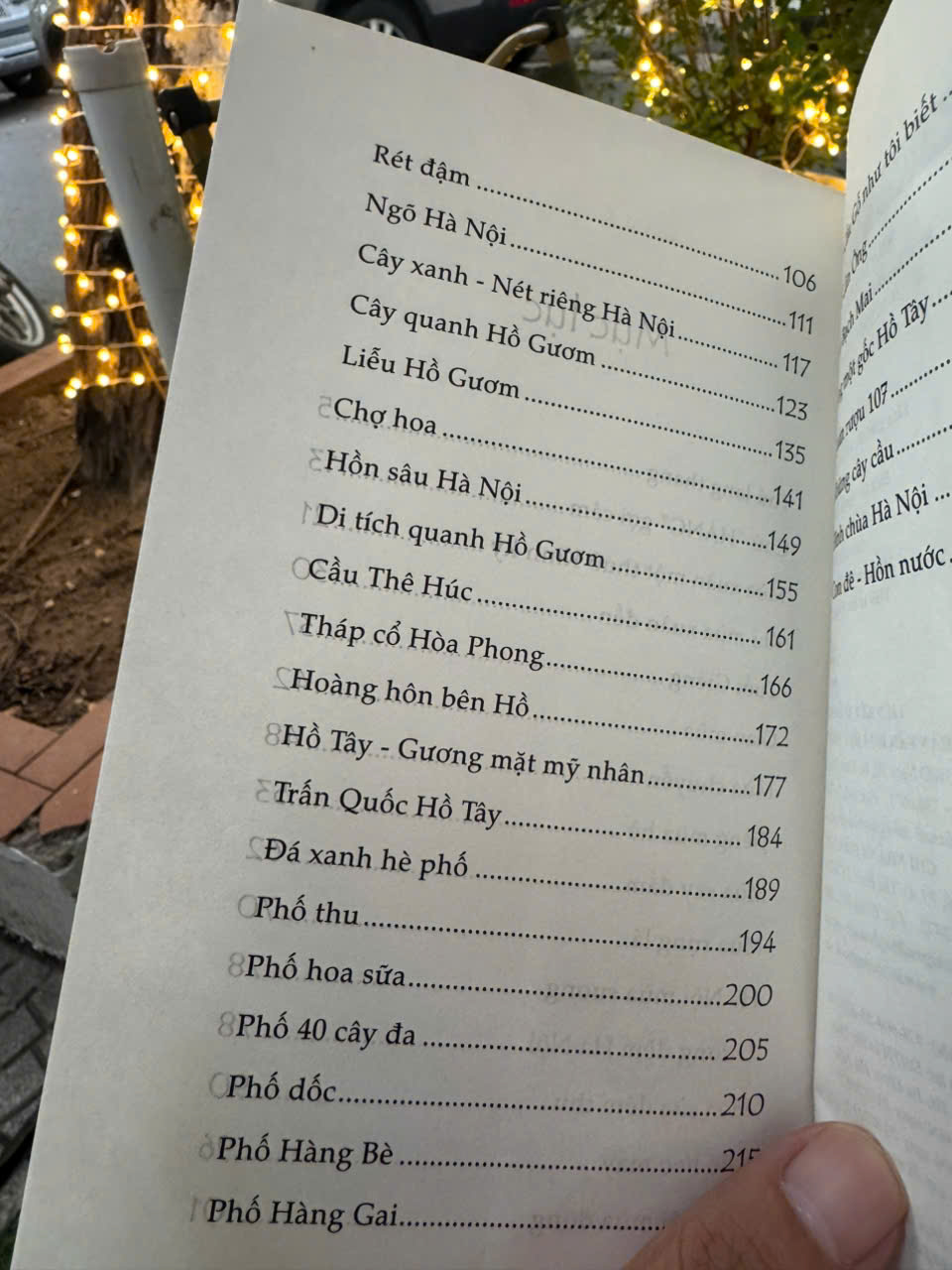 “Có người lại thích lang thang đêm. Đêm Hà Nội mới huyền hoặc làm sao. Trước hết, rất an toàn. Đầu ngõ Tràng Tiền tịch lặng, bay lên mùi thơm ngô nướng. Đầu ngõ Phất Lộc có mùi lục tào xá và cà phê kỳ dị. Nhưng lang thang đâu phải để tìm ăn là chính.